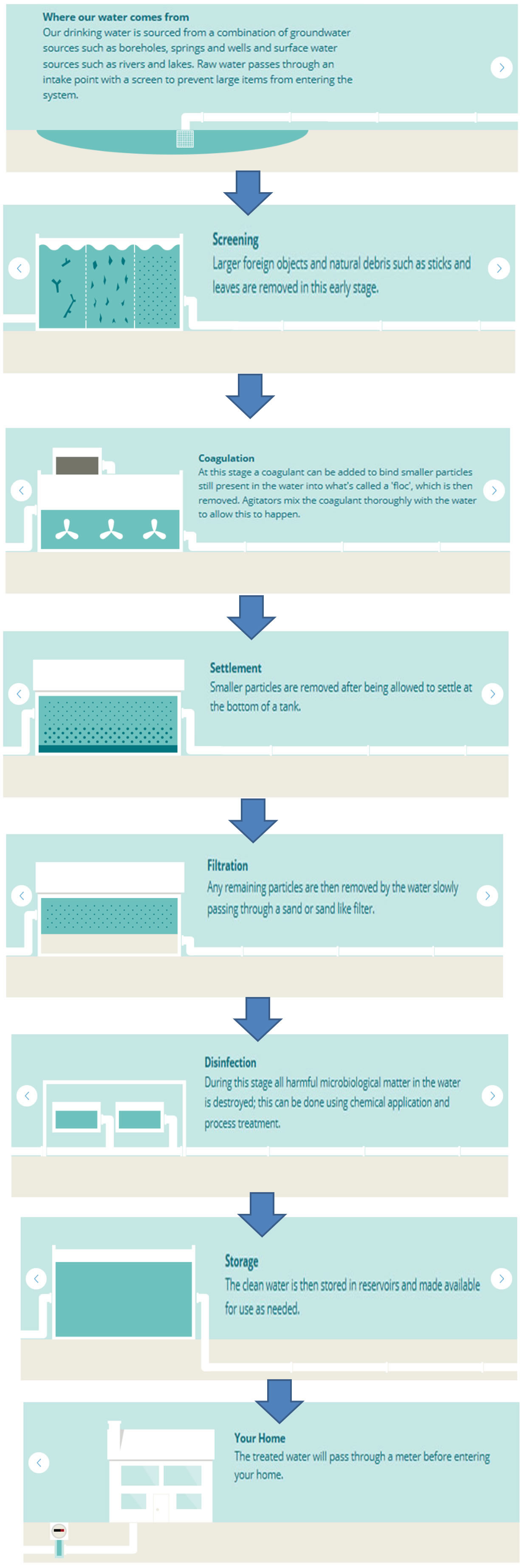 The Carn Reservoir is the primary water storage reservoir. Secondary chlorination is provided at this location.